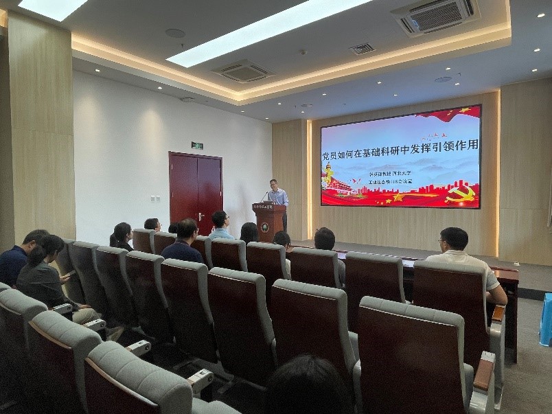2023年5月18日中午,西北大学化学与材料科学学院韩英锋教授在365上市公司官网工业生态楼118会议室为无机支部老师讲授了一堂生动的党课:党员如何在基础科研中发挥引领作用。